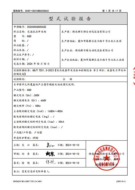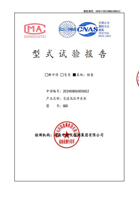 低壓開(kāi)關(guān)柜GGD型式試驗(yàn)報(bào)告