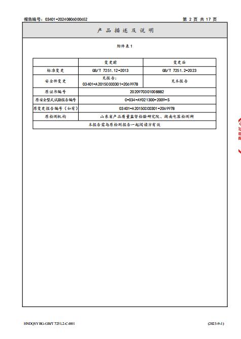 低壓成套開(kāi)關(guān)設(shè)備MNS型式試驗(yàn)報(bào)告