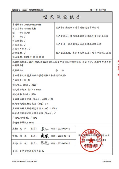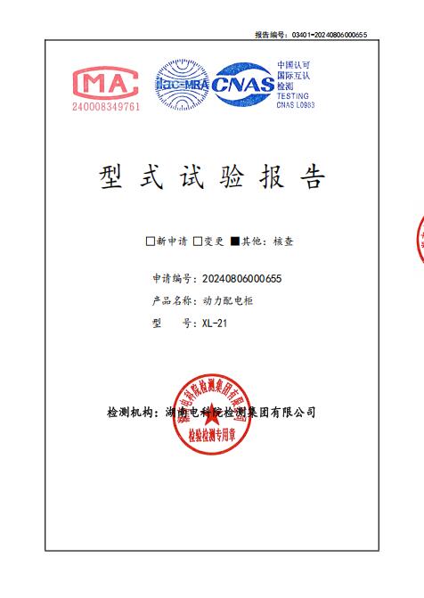 動力柜XL-21型式試驗報告